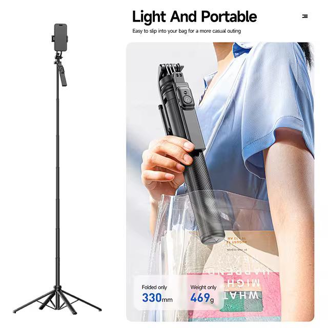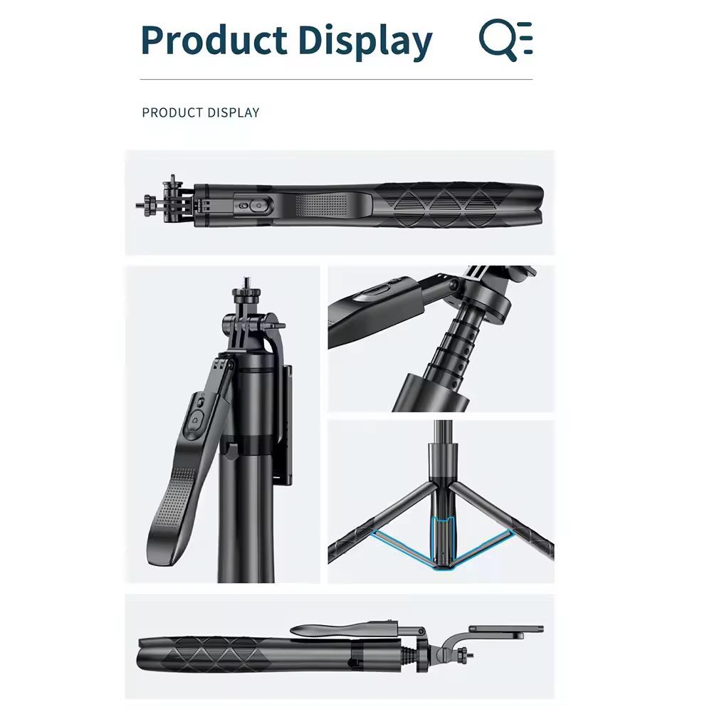 ajustable, adecuado para varios lugares Mango de equilibrio, capaz de disparar panorámico de 360 ° Clip de teléfono separado, se puede utilizar como soporte de teléfono Amplia compatibilidad con interfaces (se puede usar con luces de relleno, luces de relleno dobles, Cámaras Deportivas, cámaras digitales, etc.) Bluetooth: v5.4 Compatible con iOS y Android Capacidad de Batería: 800mAh Distancia de Bluetooth:10M Material: Aleación de Aluminio + ABS Control Remoto Inalámbrico Tiempo estimado de Trabajo 1.3 Horas